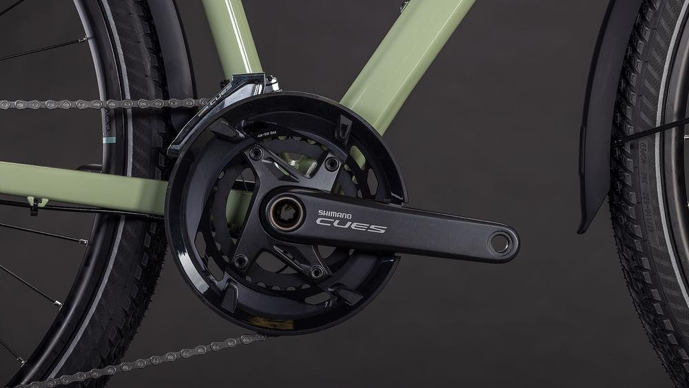 • crankset: Shimano Cues FC-U6010, Hollowtech ll, 46x32T, Chainguard