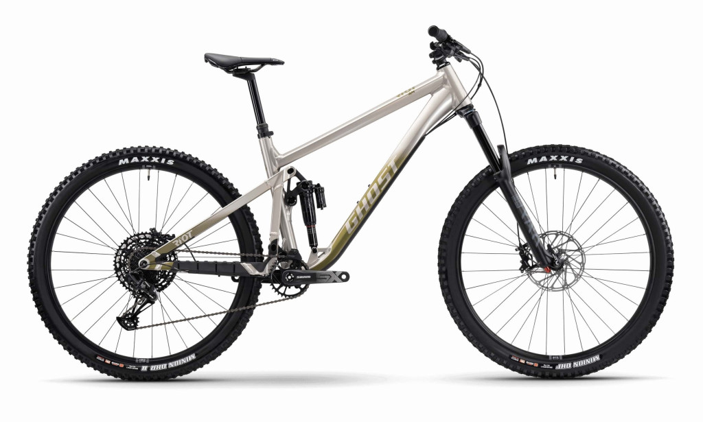 GHOST Riot AM Pearl Warm Grey/Metallic Mud Green Glossy MTB Fully kerékpár